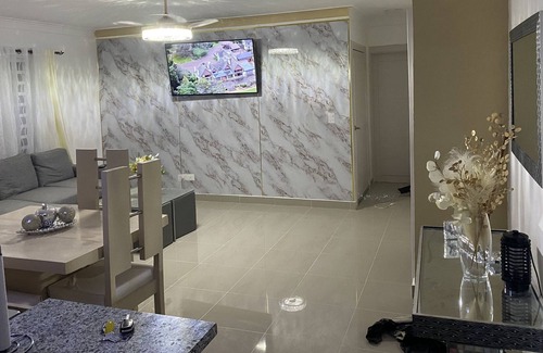 Lujoso y nuevo apartamento con jacuzzi privado. Donde pasará una excelente noche junto a tu familia. En la entrada tendrás bebidas de bienvenida ,piscina con aria común ,jacuzzi privado ,agua caliente en la ducha