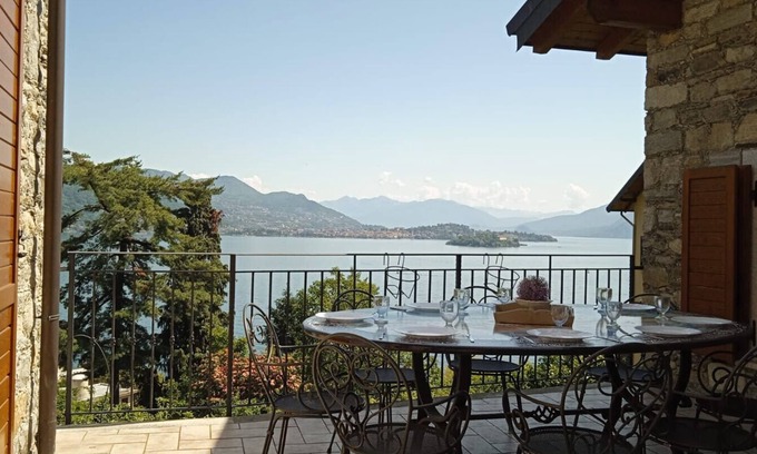 In Roncaro Baveno, panoramic and sunny hamlet on the hill, there is the Lulù house. It is a newly renovated stone cottage with great elegance in the furnishings. The house is made up of two cottages with two terraces, one with sun loungers and lake view, the other larger central equipped with deck chairs, table for 8 people, umbrella and large stone barbecue. From here you can enjoy a magnificent view of the lake and the Borromean islands. In the main part of the house there is a service bathroom, the living room with lounge, satellite TV, dining table and the fully equipped open kitchen area. Climbing the staircase on the first floor there are two bedrooms, one double with a beautiful lake view and another with two single beds and on this floor there is also an elegant bathroom with shower. In the other rustic on the ground floor there is the living room with double sofa bed and lake view, on the first floor there is the bedroom with two single beds and lake view and another elegant bathroom with shower. At 200 meters from the house there is a garage available. To access the house you need to walk a small pedestrian street between the houses about 150 meters long. Little pets are welcome with a fee.