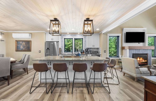 This new construction home is perfect for groups up to nine. Guests will appreciate the modern amenities, stylish decor and comfortable spaces. Four large bedrooms and three full bathrooms ensure enough space for all. Designed with comfort in mind, this space would work well for retreats or large families. Located in Lamoine, a small coastal town, guests will enjoy the oceanfront location. With a landscaped fire pit area, guests will love spending time taking in the gorgeous views, birdwatching and watching boats pass by. The shoreline is typical of Maine beaches and is rocky in nature and located in a tidal zone. Guests will be able to experience both high and low tides from this property.