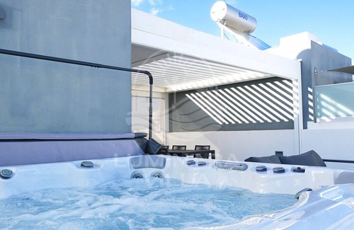 A private swimming pool (with safety cover) in the garden as well as a private jacuzzi with sea view on the rooftop