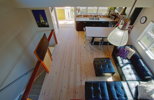 This airy and light loft is a sanctuary to relax into. The 13' ceilings and ample windows give it a spacious and roomy feel. You have everything you need, yet is not cluttered or cramped. It is well thought out and very organized.