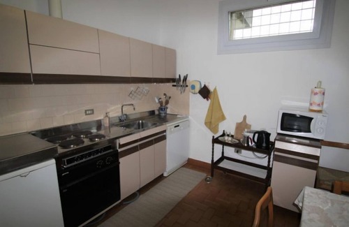 3-room apartment 120 m2 on 2nd floor. Simple and antique furnishings: living/dining room 35 m2 with panoramic window with TV. Exit to the terrace. 1 room with 2 beds. 1 room with 3 beds and hand-basin. Open kitchen (4 hot plates, oven, dishwasher, microwave, freezer). Bath/shower/WC. Solar energy heating. Heating available only from 15.10. to 15.04. Terrace 18 m2, roofed. Terrace furniture. Beautiful view of the lake. Facilities: washing machine. Please note: non-smokers only. Maximum 1 pet/ dog allowed. IT012086C2J4IFY772