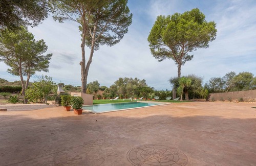 Dream villa of 477m² for 8 persons on a plot of 7525m², 4 double bedrooms, 5 bathrooms (1 with jacuzzi bath), air conditioning, free Wifi, garden, swimming pool, barbecue and several relaxation areas, with a spacious dining room with open plan kitchen and a modern and refined style, close to Sant Jordi in Mallorca.