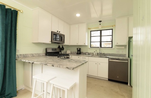 Located between IU campus and Bryan Park; this Post WW-2 prefab enameled steel house is a great way to visit campus in style and comfort. This 2 bedroom, 2 bathroom charmer has radiant heating in the concrete floors. Relax in the sunroom or living area, enjoy family time around the dining table, or hang out in the fenced back yard. Get to IU campus in 5 minutes, Memorial Stadium or IU Hospital in 10 minutes, or Lake Monroe in 15 minutes! It has everything you need for a very comfortable stay.