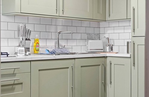 The kitchen has a Fridge, Oven, Washing machine, Microwave, Kettle, and Toaster as well as cooking equipment and crockery. All cleaning materials including washing up liquid, sponges and clothes are provided. Tea, coffee and sugar are provided.