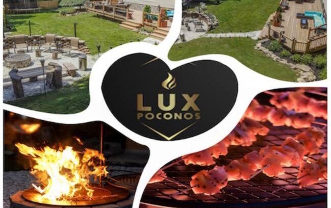 LUX Poconos Fire Pit Game Room Sauna Outdoor Netflix Custom Bar is located in East Stroudsburg.