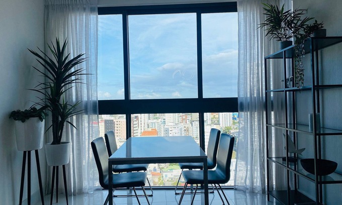 Enjoy the experience of staying in our new and Luxurious apartment located in a 17th floor in the exclusive financial area of Santo Domingo. The apartment has incredible city views, fully furnished with a 55" HD flat smart TV in the living room and the master bedroom, 20 mb Internet and kitchen amenities, also from here you can walk to some of the best restaurants, spend the afternoon shopping in BLUE MALL or enjoy our pool with city views. No visitors!
