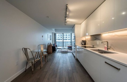 Step into your elegant retreat in the heart of Halifax! This chic one-bedroom apartment features an open-concept design that effortlessly blends style with comfort. Relax on the plush sofa and enjoy breathtaking skyline views of the city. With modern furnishings and a spacious layout, it's the perfect spot to unwind after a day of exploring. Whether you're catching up on shows with the Smart TV or just taking in the views, this stylish space will ensure a memorable stay.