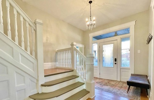 Elegance & beauty await you in this amazing space! This stunning 20th century home has been fully renovated, yet still maintains its old world charm. The soaring high ceilings are appointed with lovely medallions & modern chandeliers. Start your day with an espresso by the Christmas trees. Or stroll down the block to the t-stop and get downtown in 15 minutes. With two king beds and five queen's, this beautiful home is filled with lovingly crafted spaces professionally designed with large groups in mind.