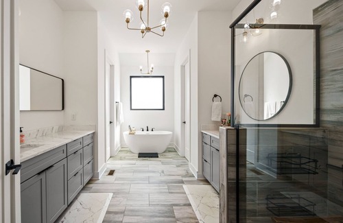 When it's time to rest, retreat to the luxurious master bedroom downstairs featuring a sleep number adjustable bed and a large soaker tub in the ensuite bath. Upstairs, two guest bedrooms await with comfortable accommodations and TVs in each room.