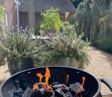 Food & DrinkTea/Coffee makerBathroomBathtub or shower, Shower, Toilet paper, Hairdryer, Towels/Sheets (extra fee), Toilet, Towels, BathtubGeneralCarbon monoxide detector, Air conditioning, Fan, Iron, Heating, Fire extinguisher, Smoke AlarmKitchenMicrowave, Oven, Toaster, Coffee machine, Dishwasher, Refrigerator, Kitchen, Kitchenette, Dining table, Washing machineLiving AreaDesk, Fireplace, Dining areaMedia & TechnologyFlat-screen TVViewView, Garden viewOutdoorsTerrace, Barbecue, Outdoor dining area, Outdoor furnitureBedroomLinens, Childrens' cribs |