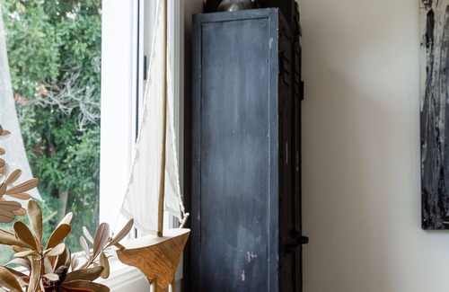 The River Haus features gorgeous old treasures including ship's rope, vintage kitchen scales, Bentwood chair, steamship trunk coffee table and weather beaten boat oars. New treasures include Smart TV, JBL sound bar, wifi, ducted heating and cooling, blackout blinds (including a nifty automatic blind for the back doors), Nectre woodfire, Bosch dishwasher and Bosch gas oven.