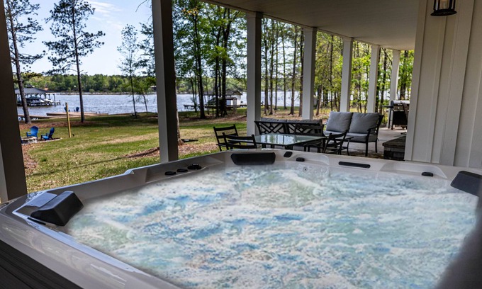 Luxe Lakefront Home with Private Hot Tub, Dock, Kayaks & Firepit - Dogs OK is located in Lake Oconee. Luxe Lakefront Home with Private Hot Tub, Dock, Kayaks & Firepit - Dogs OK provides accommodation, featuring TV, Balcony/Terrace, Bedding/Linens, among other amenities. This House features TV, Balcony/Terrace, Bedding/Linens, to make your stay a comfortable one.