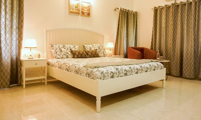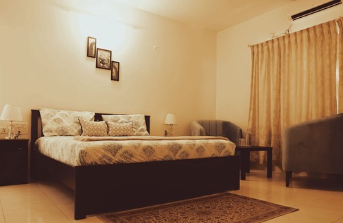 .LUXRE Homes is a peaceful and charming property. This villa is a luxurious and spacious property that offers the perfect place to relax and enjoy. It features elegant and refined design elements, with high-end finishes and top-of-the-line amenities. Most of the furniture and furnishings is from IKEA. The open floor plan allows for easy entertaining and comfortable living, while the outside spaces provide a serene setting for taking in the natural beauty of the surrounding area. With plenty of room for guests, this villa is the ideal spot for hosting family and friends, or for simply enjoying a peaceful retreat. The terrace sit out space is a great way to gaze the sky with twinkling stars and couples can also enjoy candle light dinner setting. LUXRE Homes also has a dedicated work area for business travelers to work on the concept of SOHO. In addition to that we have a common TV lounge which provides a shared space for guests to relax and enjoy their favorite shows or movies together. A separate dining area with options of ordering different cuisine prepared by in-house chef is another charm.