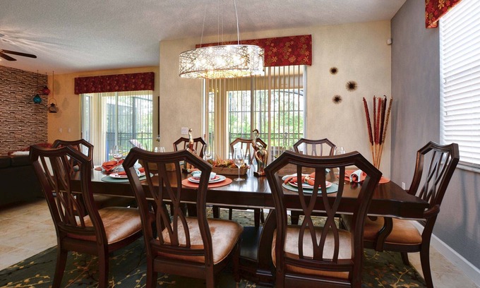A beautiful villa, located in the luxurious resort Paradise Palms, has 6 bedrooms & 5 bathrooms with other amenities for 12 guests. Along with the convenience of space to share with your family and guests, as well as the privacy of your own. The home is in the proximity of tourist destinations, such as Disney World or Universal Studios. Get everything you would need for your vacation.