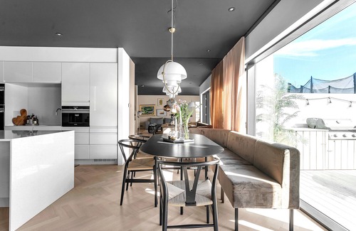 A luxurious 228sqm/2450sqft 6 bedroom house with 2 bathrooms and a south-facing patio with a hot tub, a BBQ, a newly installed solar-room and a small soccer goal. Sonos speakers system throughout the house, TV room with Netflix, blazing fast Wifi, and parking right outside. Pet free and non-smoking house. 10 min drive to city center. Bus stop to downtown within walking distance. Also within walking distance is a supermarket, bakery, restaurant, a swimming pool and the ocean shore. Neighbourhood with many playgrounds.