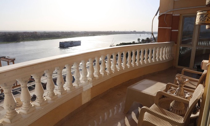 The apartment has an amazing majestic view of the Nile River and a great view of the Giza pyramids from all the windows and balconies. It has 3 bedrooms : - A single master bedroom with a bathroom. - 2 single bedrooms. - Kitchen . - Bathroom. - Living Room with the dining table. - A balcony shared with the three bedrooms and the living room that has the majestic view of the Nile River. - Its location is in a lively place where there is everything around it popular restaurants and supermarkets.
