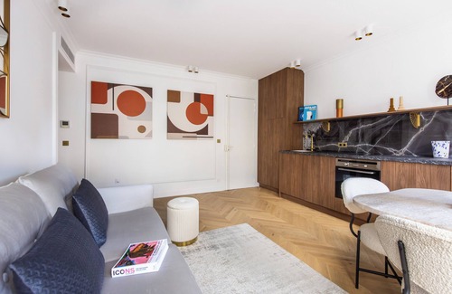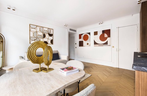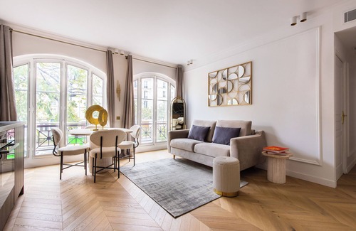Succumb to Parisian charm in this stunning 2-bedroom apartment, meticulously designed to combine modern comfort with refinement. Enjoy elegantly decorated bedrooms, relax in a sophisticated and contemporary bathroom, and showcase your culinary talents in a fully equipped open kitchen. The dining area is perfect for unforgettable meals, while the living room, featuring a premium sofa bed, ensures a warm welcome for additional guests. Perfect for hosting up to 6 people!