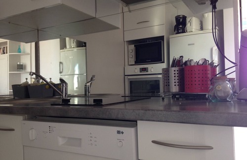 Independent room with a double bed, a dressing room with wardrobe, many drawers and several shelves, very cozy and bright with double sound insulation of windows for a good night. The bedding is comfortable, beds are made on arrival. The sofa in the living room is convertible into a comfortable bed of 140 cm with a quick opening system (no cushion or back to remove). The living room is equipped with a flat screen TV, many French and foreign channels, TV also in the room. The kitchen is functional, are available to you all the necessary products to start: small grocery and cleaning products. You will find to welcome you some refreshments. On the terrace, you can take your meals and relax on the deckchair or chiliene.