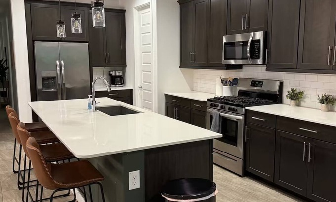 Bring the whole family to this great place with lots of room for fun. Escape to this serene Arizona retreat, where comfort meets the beauty of the desert. Enjoy spacious living with modern amenities, a fully equipped kitchen, and cozy bedrooms. Unwind in the outdoor oasis featuring a patio perfect for stargazing. Located in Downtown Queen Creek, this home is ideal for relaxation seekers alike. Whether exploring or unwinding, you'll love the charm and convenience of this desert getaway.