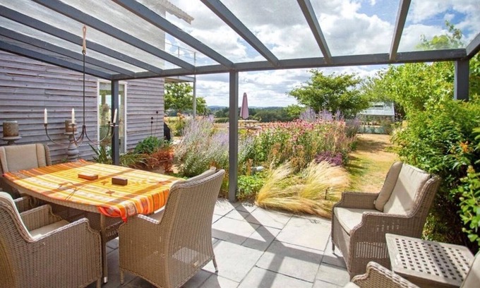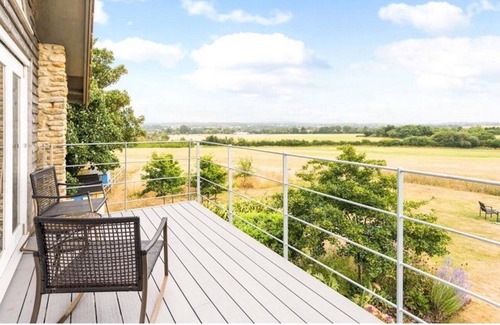 A truly unique modern farmhouse with far reaching views over Somerset. Modern Scandinavian style open plan living with ground source underfloor heating, with multiple bi-fold doors leading onto the glorious gardens. The farm opens out onto fields owned by the hosts.