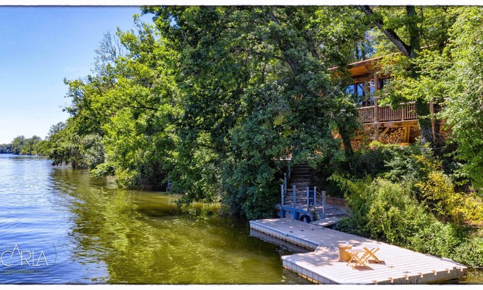 Magnificent wooden chalet located on the right bank of the Tarn, between Albi and Gaillac. Everything was chosen, decoration, lighting, furniture with particular care. A huge covered terrace (secure for children), overlooking the Tarn river, allows you to enjoy the surrounding nature all year round. The interior of the chalet, with its large picture windows, facing the river, is flooded with light. The equipment, very qualitative, offers great comfort and a warm atmosphere. A large living room with sitting area equipped with a wood stove and a sofa bed faces an open, fully equipped kitchen. The two bedrooms with refined bedding will ensure a real rest. Shower room with large functional shower. Accessible all year round, electric heating and air conditioning. Safe. A beautiful staircase gives access to a private fishing pontoon. Exterior lighting. Fishing / sightseeing boat for rent. Sheets and towels provided. Optional end of stay cleaning service (90 €).