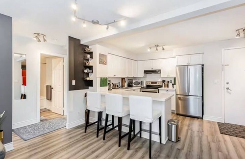 A unit with Breath-taking Views re-vitalising you throughout the day. Stunning 3-bed, 2-bath condo in the heart of the city. An open-concept living area, and large windows for natural light. The gourmet kitchen is equipped with top-tier appliances and sleek cabinetry. The master suite offers an en-suite, and two additional bedrooms are perfect for family or guests. Prime location near dining, shopping, and entertainment. Centrally located place.