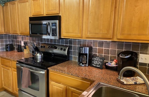There is cable with HBO, Showtime and Cinemax plus OnDemand. Free WiFi is provided plus the primary bedroom has a 50” UHD TV and the second bedroom has a 32" flat panel TV and all have DVD players. We have a foldable high chair and a Port-A-Crib for the little ones. You'll find a coffee bar with both a brewer and a Keurig.