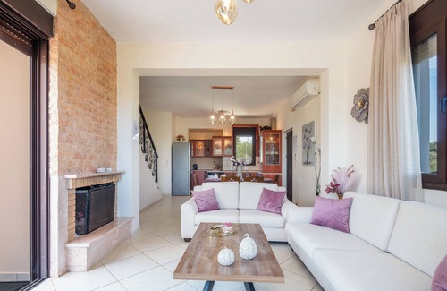 Villa Artemis is a newly built three bedroom country property, situated in some 2 acres of unspoilt natural environment. The lower level of the villa has a table tennis area and an 8m long private pool. A short flight of steps leads up to the main entrance, which in turn opens out into a lovely well furnished lounge/dining room and open plan kitchen. The lounge has a feature fireplace, satellite TV, a DVD and aPlay station 3. The patio doors open out onto the front terrace and pool area. On this level there is also a shower room with hydro massage shower. Next to this is the first air-conditioned bedroom and a shower with WC en-suite. A marble staircase leads up to the first floor and two further bedrooms. Both bedrooms have got terraces overlooking the pool, gardens and the bay of Rethymnon in the distance. On this floor there is also a large bathroom. On the ground floor there is a newly built fitness room where our guests can exercise themselves. Next to the pool and the barbecue there is ample space to dine al-fresco. Local shops are 1km away from the village of Prines. A car is essential.