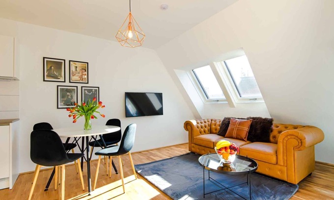 The stunning location and stylish décor are enhanced by the sun-soaked balcony from which you can enjoy mesmerizing views of Vienna.
