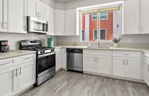 • A modern kitchen equipped with granite countertops and top-tier appliances.