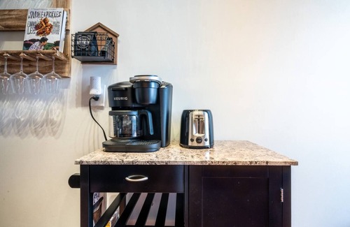 The kitchen is fully equipped with all basic appliances and utensils needed for cooking your own meals. We also have a drip coffee pot and Keurig machine - coffee included!