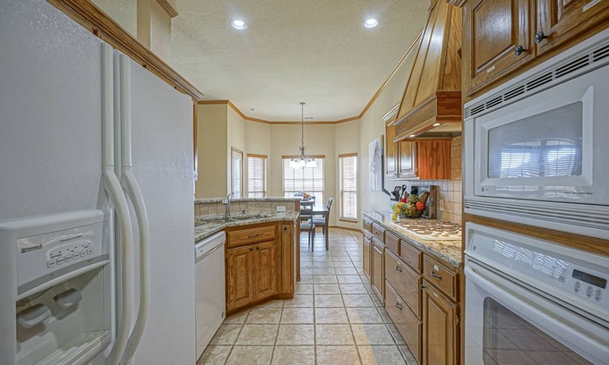 Newly Furnished Large 1800sf Home in a Wonderful Neighborhood in the Heart of SW OKC. Fully-Equipped Kitchen, Large Dining Area with Breakfast Bar for additional seating, Wood floors throughout, Huge Office with Desk & Chair & Console, Comfy Pillow-Top Mattresses, Amazing Master Suite, Walk-in Closets in all Bedrooms, Large Patio Dining Set on Covered Patio w/Gas Grill for Outdoor Entertaining, (2) Ultra HD Smart TV's w/Cable & Netflix Capability, Free Cox High Speed Internet, 2-Car Garage w/2-Car Driveway available, Ceiling Fans throughout, Washer and Dryer.