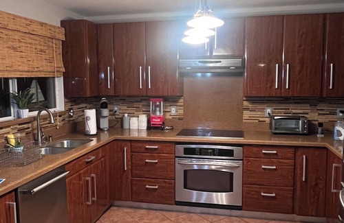 Located in San Antonio, enjoy what this 6-bedroom house has to offer. With 1 king bed, 2 queen beds, 1 bunk bed, and 2 full beds, this tremendous property provides ample space for guests. The house features a fitness room, WiFi, AC, heating, an iron, and a washing machine, ensuring a serene and comfortable stay. The 3 bathrooms are equipped with a bathtub for your relaxation. Whether you're exploring the city or unwinding in the cozy bedrooms, this terrific house is the perfect home away from home. Feel free to reach out to us during your stay - we're happy to suggest local spots to check out.