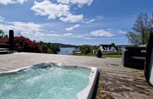 Luxurious house in Troldhaugen in the neighborhood of Edvard Grieg. Spacious and modern and situated between the city center and the airport (10 minutes each way). Quiet and cozy neighborhood. Access to the water with an own boathouse with Kayaks that can be used. Electric car charge and large parking space. Beds: 3x double 5x single (refurbished bedrooms after pictures was taken)