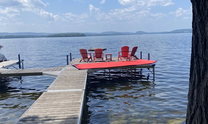 Boat rental is available separately (either from us or arrange your own); we'll provide the dock space. Great Pond has a gas station at the main marina, and numerous public docks for boat rides into the village. There's also a locally famous restaurant with its own dock where you can either dine on your boat, or out on the lawn while listening to live music under the stars.