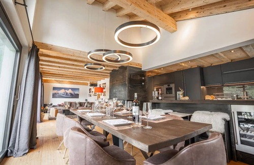 A stunning duplex penthouse in Zermatt! This luxurious retreat features an open-plan living, kitchen, and dining area, highlighted by a modern fireplace for cozy evenings. On the first floor, you'll find two double bedrooms, each with its own ensuite bathroom. The upper level includes another double bedroom, a single children's room, and the master suite, which boasts breathtaking views, an outdoor toilet and shower, and an electric fireplace. Every room is equipped with a Smart TV and Sonos speakers for your entertainment.