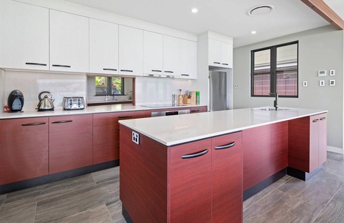 Full laundry facilities, free Wi-Fi, and all linen and beach/pool towels are provided. The property is perfect for entertaining, with a massive living/lounge area in this open-planned designer home that overlooks the dining/lounge. Plenty of room is available for boats or toys. And for the fishermen who have had a great day out at the reef, a massive chest freezer is available.