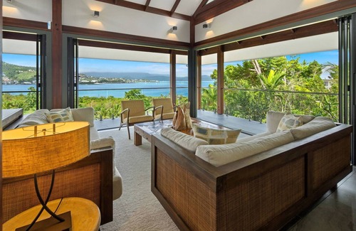 Two living areas provide ample space for relaxation and entertainment. The upstairs living area features formal lounges and dining in an open-plan area with the most amazing ocean and Airlie Beach views. The downstairs living area includes lounges and a smart TV.