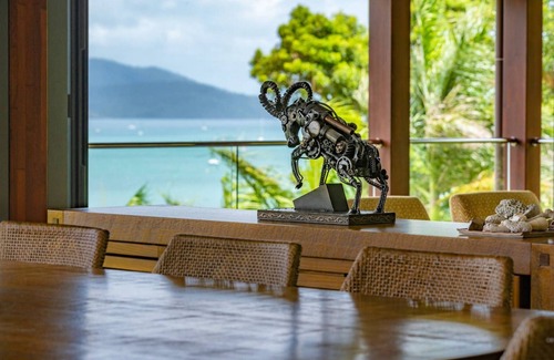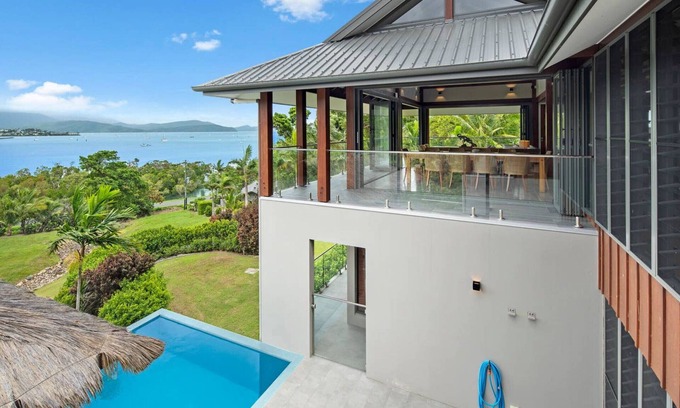 The luxurious master suite features walk-in robes, an office area, and a spacious bathroom with breathtaking ocean views. Three other spacious and luxurious bedrooms with bathrooms for each bedroom offer privacy and comfort for your stay. All bedrooms, kitchen, lounge, and dining areas have incredible views of the ocean and Airlie Beach.