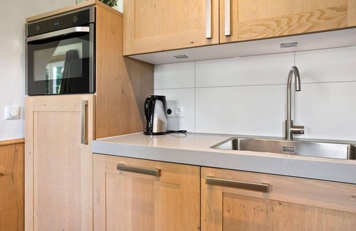 While you're here, you can enjoy all the comforts of home and more, including a refrigerator and an oven, as well as a stovetop and a dishwasher. Other amenities include towels, an electric kettle, a toaster, and a hair dryer.
