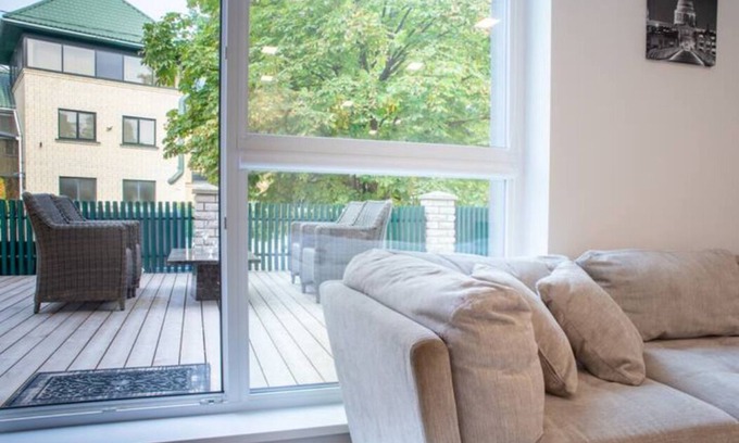 You can take a stroll in the famous "Ąžuolynas park" or "Freedom Alley," or explore the vibrant nightlife with bars and clubs close by. Alternatively, you can relax in the apartment's terrace, bed or sofa and enjoy the sunshine and fantastic sunrises. The apartment features a free and safe parking slot inside the yard, providing secure parking for one car (parking slot - D). The terrace, a part of the apartment, is perfect for enjoying meals and gatherings with friends and family. This apartment is situated in a prime location in the city center of Kaunas, offering easy access to public transport and all amenities. If you are looking for a unique, spacious, and comfortable living space with an excellent location, do not miss the opportunity to live in apartment number 1 at Aukstaiciu st. 94-1.