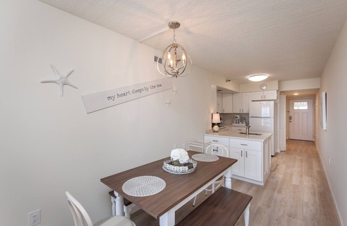 This south END unit is FULLY RENOVATED! 2-bedroom, 2-bathroom vacation condo in The Beachdrifter Oceanfront Condo on the beautiful Atlantic Ocean in Jax Beach. The Beachdrifter Community has an elevator; under-building garage and an oceanfront pool!
