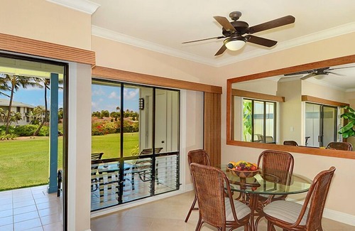 Our condo's ground level proximity with free adjacent parking eliminates the need to haul luggage and groceries upstairs or any distance. You'll savor the expansive greenbelt that fronts your living space and lanai. Unobstructed ocean and beach views with waves breaking can be enjoyed just a few steps off the lanai! Its southern exposure ensures plenty of sunshine and the lanai is perfect for outdoor dining!