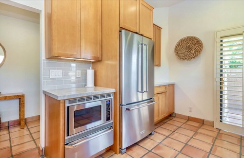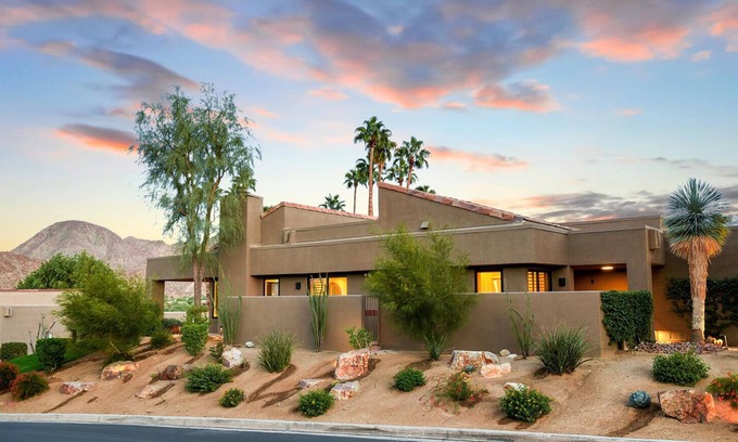 This corner lot offers stunning mountain views of the the Santa Rosa mountains and is both private and serene. Skylights and large windows provide sunny, light-filled rooms. Home features two high-definition smart flat screen TVs, high speed internet and cable. Washer/dryer. You are a short walk to the famous Living Desert and a few minutes drive to shopping and nightlife on El Paseo!