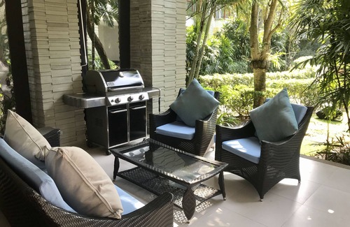 Beautiful ground floor three bedroom condominium (180sq meters accommodation, 52sq meters terraces), fitted out as a second home and furnished to a very high standard. The goal was to create an apartment which was both comfortable and luxurious and we have included many items which will hopefully make your stay that extra bit special. The Pearl of Naithon is a magnificent gated condominium development, tucked away in a beautiful forested valley, lying directly adjacent to the magical, unspoiled Nai Thon beach. With numerous local restaurants serving delicious thai food, and sand so clean that it squeaks when you walk on it, this amazing little beach is located only 15 minutes from Phuket international airport and 20 minutes from several world class golf courses.