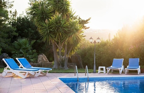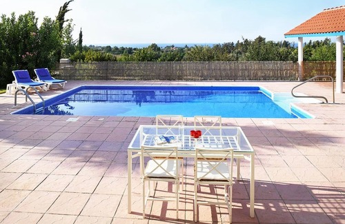 FULLY air-conditioned luxurious villa. It provides total privacy, superb views, a private swimming pool (5mX8m; depth up to 2,00m), Flat screen TV, DVD player, FREE WiFi, very spacious open plan kitchen/dining/living room, three spacious bedrooms, one with en-suite facilities, (the other two sharing bathroom facilities), a "fourth bedroom" in the form of a loft/ "children's" bedroom, outside barbeque, fully matured garden…and much much more!