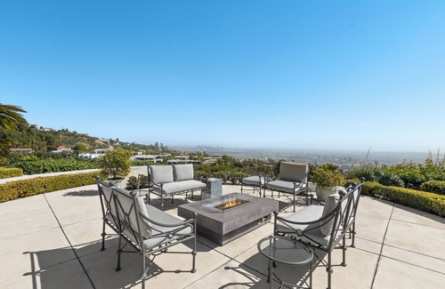 Panoramic views stretch from downtown Los Angeles to Catalina Island at this ultra-luxurious estate in Beverly Hills. Floor-to-ceiling glass invites the incredible vista inside, while multiple lounge areas on the terrace create even more living space for your large group. After a relaxing day by the pool, venture down to Santa Monica for a beachfront dinner and a moonlit selfie on the pier.