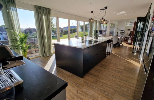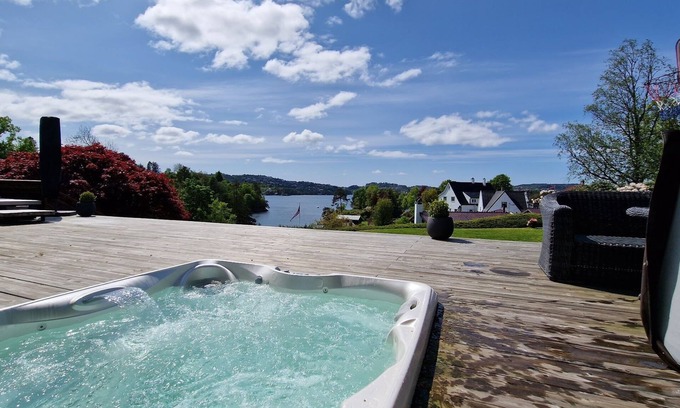 Luxurious villa in Troldhaugen in the neighborhood of Edvard Grieg. Spacious and modern and situated between the city center and the airport (10 minutes each way). Quiet and cozy neighborhood. Access to the water with an own boathouse with Kayaks that can be used. Electric car charge and large parking space. Beds: 6x double 6x single (refurbished bedrooms after pictures was taken)