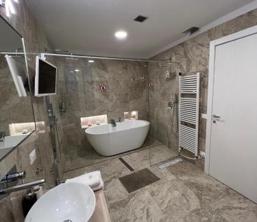 Food & DrinkTea/Coffee maker, Minibar, Bottle of waterBathroomBathtub or shower, Bathtub, Bidet, Hairdryer, Walk-in shower, Toilet, Private bathroom, Towels/Sheets (extra fee), Body soap, Free toiletries, Towels, Toilet paper, Shampoo, ShowerMedia & TechnologyStreaming service (like Netflix), Flat-screen TV, TVGeneralCarbon monoxide detector, Air conditioning, Fire extinguisher, Hardwood or parquet floors, Private entrance, Key access, Heating, Tile/Marble floor, Soundproof, Smoke Alarm, Trash cansKitchenKitchenware, Electric kettle, Coffee machine, Dining table, Kitchen, Refrigerator, KitchenetteOutdoorsPatioBedroomLinens, Walk-in closet, Wardrobe or closetLiving AreaFireplaceViewViewAccessibilityUpper floors accessible by stairs onlyBuilding CharacteristicsPrivate apartment in building, DetachedRoom AmenitiesSocket near the bed, Hypoallergenic pillowSafety featuresAir purifiersPhysical distancingSingle-room AC for guest accommodation |